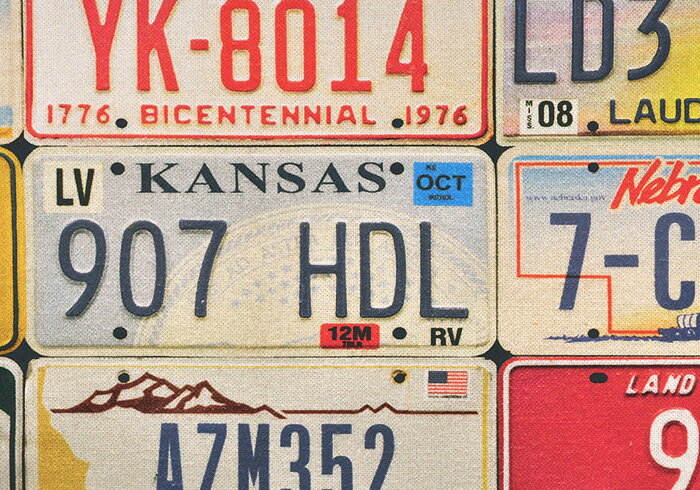 立体感のあるレトロなナンバープレートがきれいに並んだデザインです。