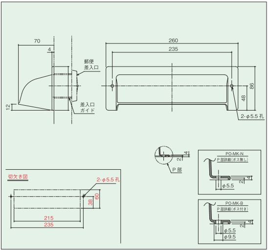 三協 アルミ 旧立山 アルミ 玄関ドア ポストロ:ポスト口(中かまち)[PKD1034] DIY リフォーム